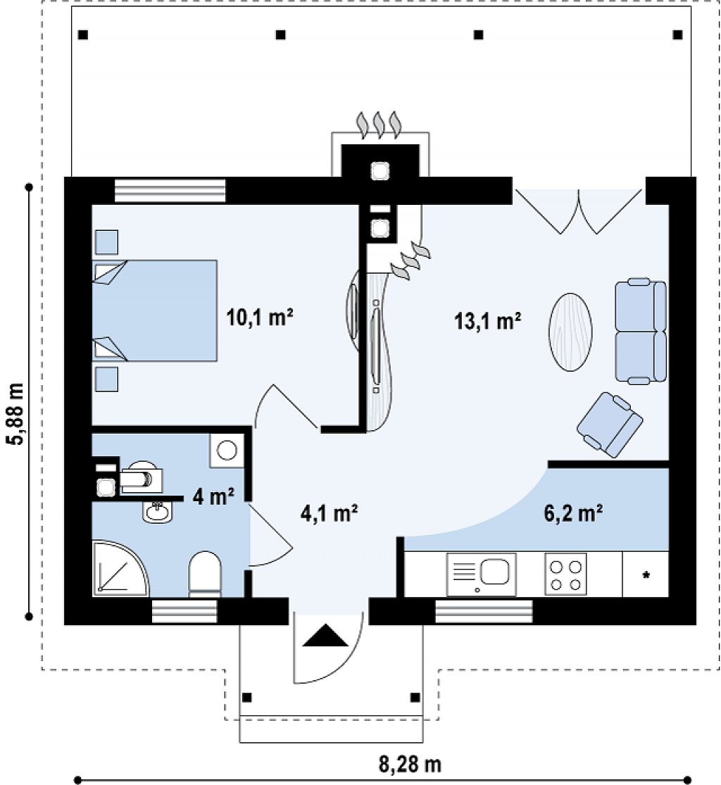 Размеры:8,28 x 5,88 м.