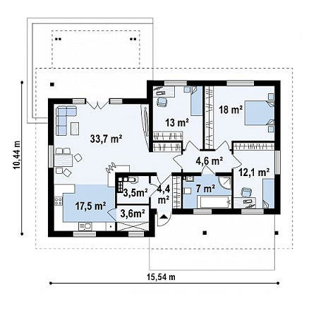 Размеры:10,44 x 15,54 м.