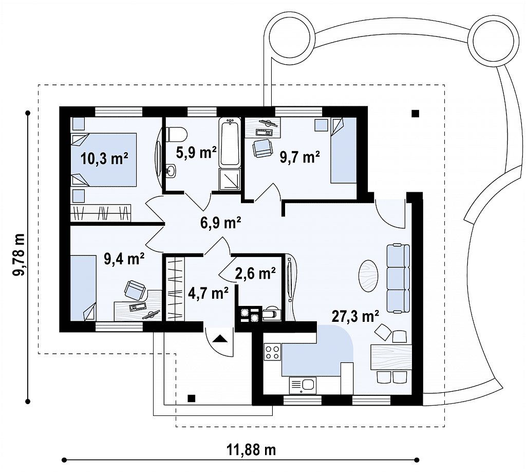 Размеры:9,78 x 11,88 м.