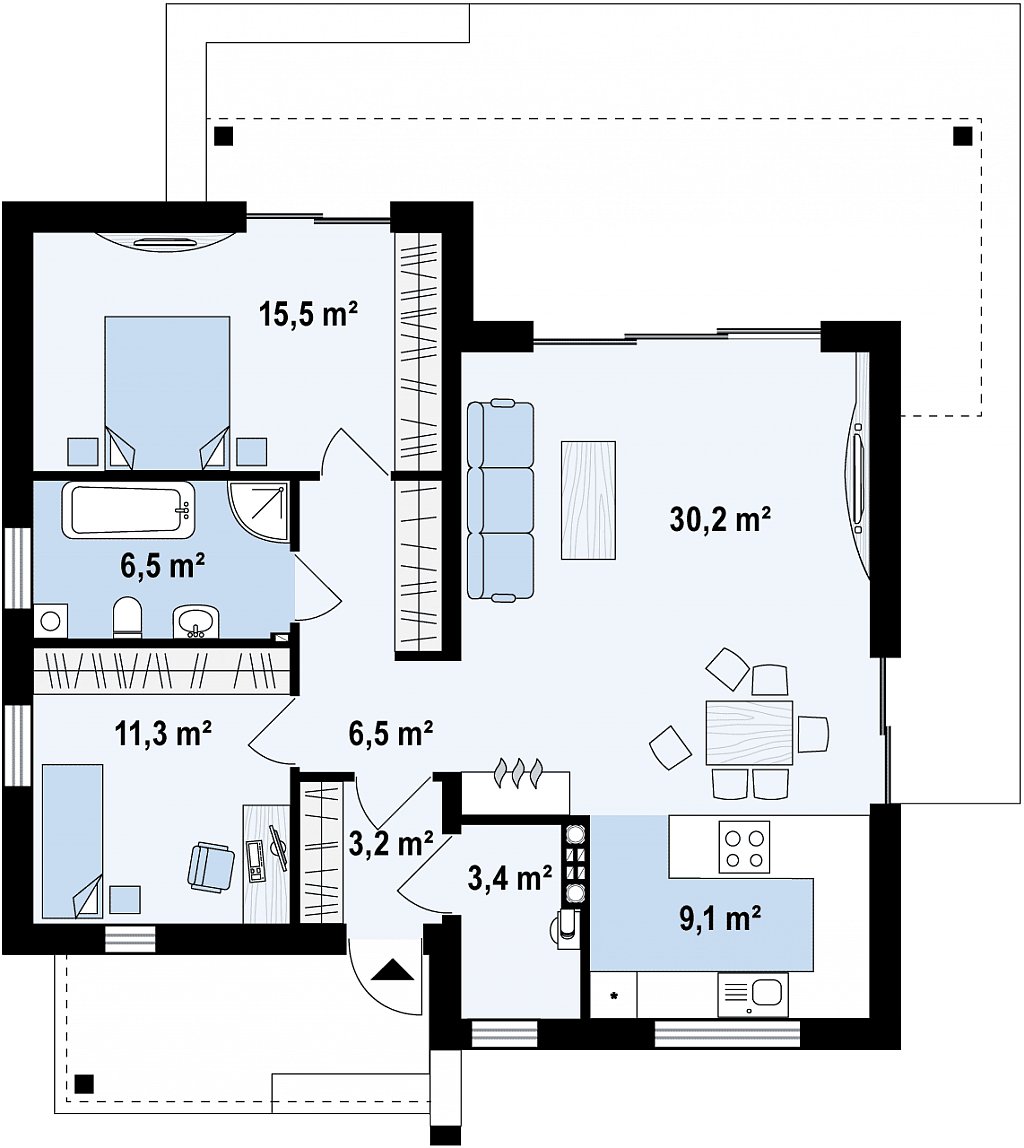 Общая площадь:86,1 кв.м.