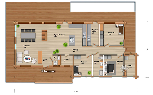 Размеры:19,5 x 8,81 м.
