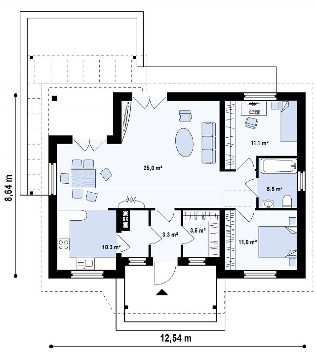Размеры:8,64 x 12,54 м.